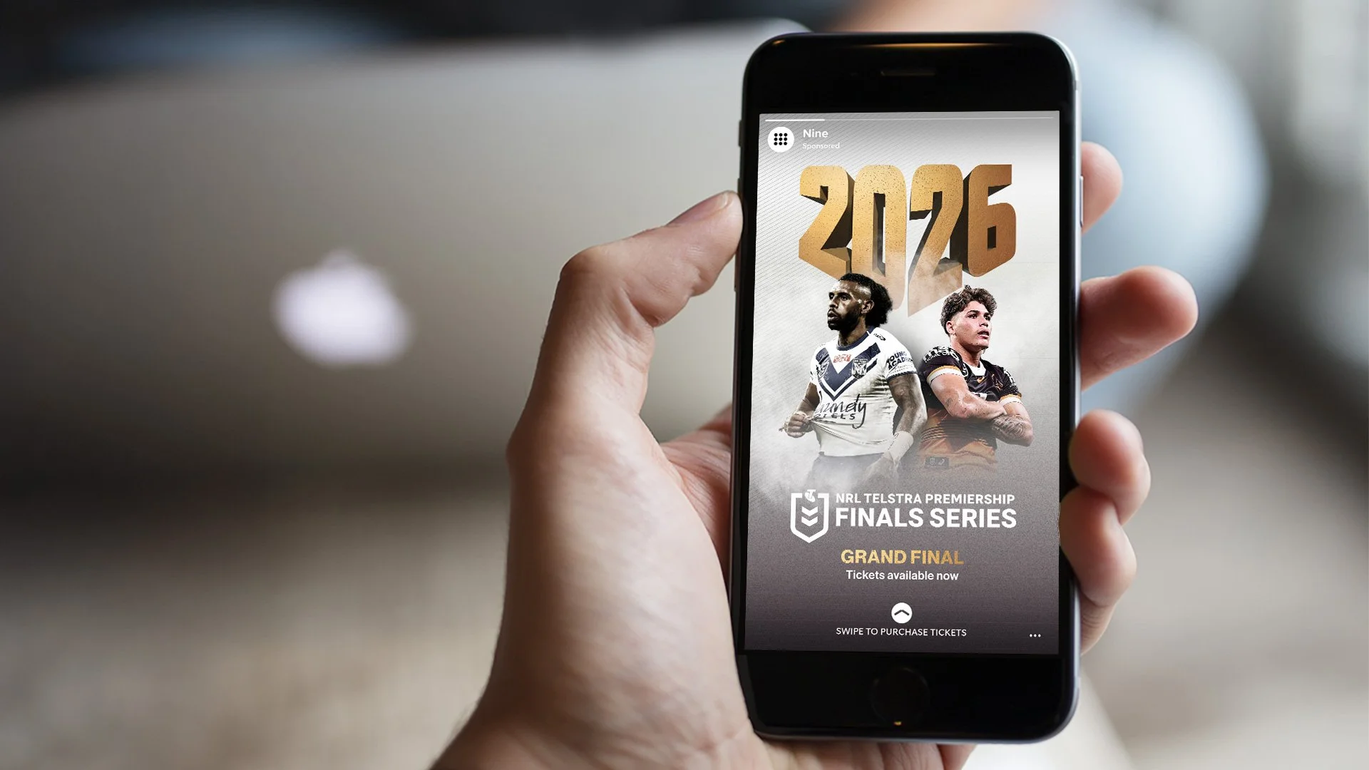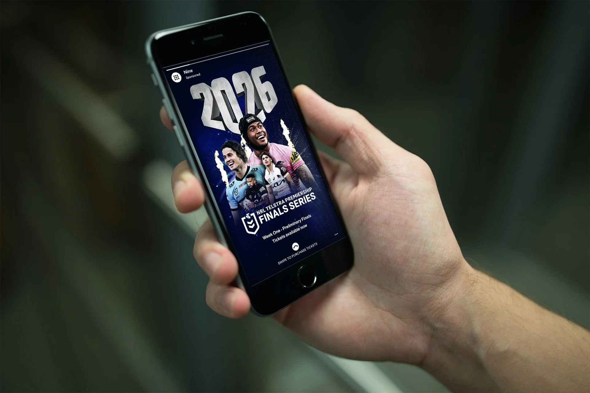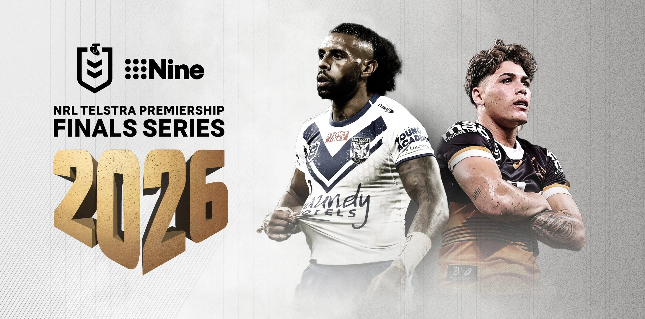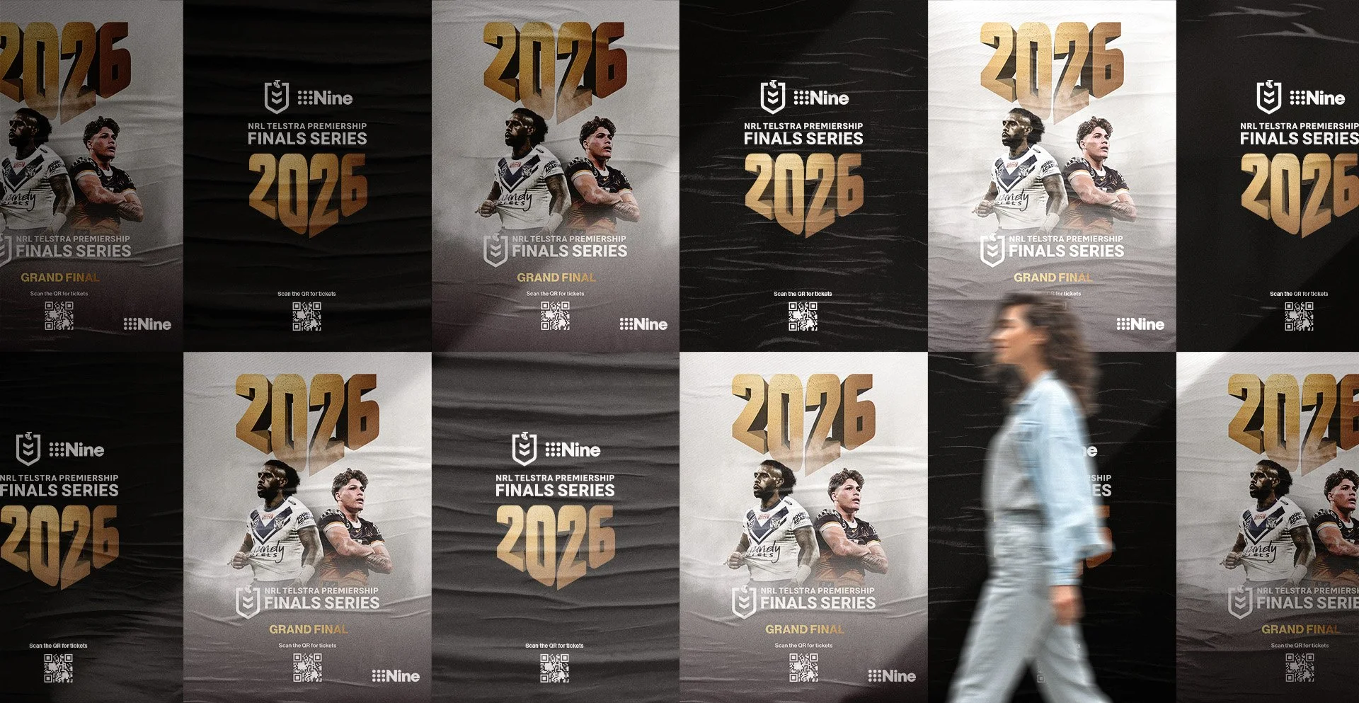 This campaign is internal within Nine, celebrating the NRL and Nine partnership and the upcoming 2026 finals. Wanting to create an identity that is cleaner than the usual NRL collateral, I produced a distinctive ‘2026’ logo to be used on all assets. The rollout is planned to have a ‘Launch phase’ and a ‘Closing Phase’ (Grand Final) both with their own look and feel, intending to reflect the phase of the NRL finals season.
